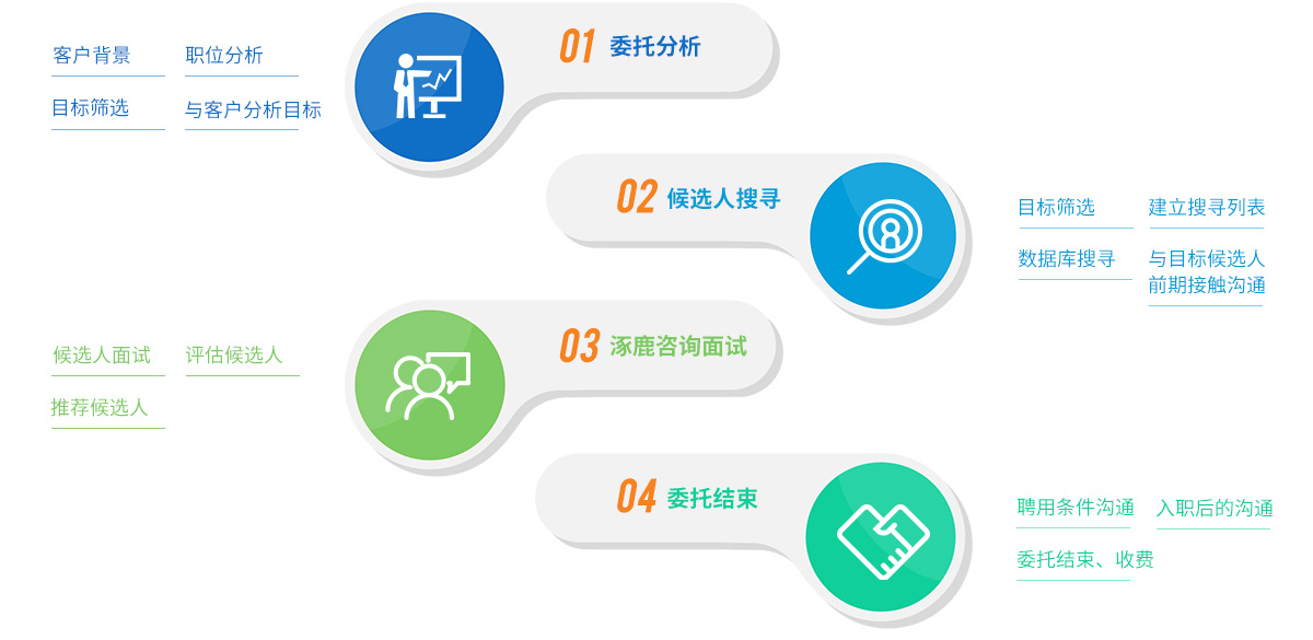 合作流程-作為中國領先的高端招聘咨詢公司之一,企業核心高管搜尋服務是涿鹿咨詢領跑中國業界和最具優勢的核心業務。涿鹿咨詢主要致力于為跨國公司、政府機構和最優秀的中國企業尋訪總裁級高管職位。近年來,我們的顧問團隊已陸續為超過50家優秀公司提供了涿鹿咨詢的核心高管搜尋服務,透過我們無與倫比的資源與知識網絡,不僅幫這些企業成功尋訪和推薦了他們最急迫需要的核心人才,同時亦幫助眾多高級經理人和專業人士實現了成功的職業轉換。